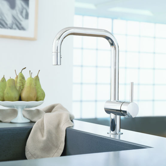 Ce mitigeur monocommande monotrou sur plage pour évier avec un bec tube pivotant type U est proposé en finition chromée brillante (Starlight) ou mate satinée (SuperSteel). Doté d'un limiteur de débit ajustable, d'un mousseur extractible 2 jets, d'un ressort de rappel, d'un clapet antiretour, d'un inverseur (mousseur/jet de pluie) et de flexibles de raccordement souples, sertis d'usine. Intègre la technologie SilkMove avec cartouche en céramique de 46 mm de diamètre permettant de gérer le débit et la température de l'eau.