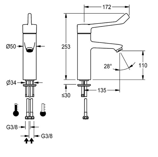 3. Facilité d'utilisation : Le levier ergonomique et sa longueur de 172 mm permettent un réglage précis du débit et de la température. Ce design facilite son utilisation, même avec les mains mouillées, ce qui est particulièrement utile dans les environnements où des gants sont fréquemment portés.