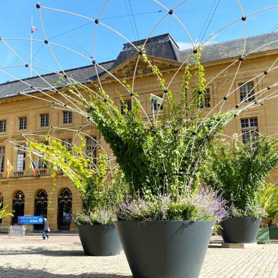 Mobilier urbain végétalisé innovant avec toiles d’ombrage | Corolle L Olympe