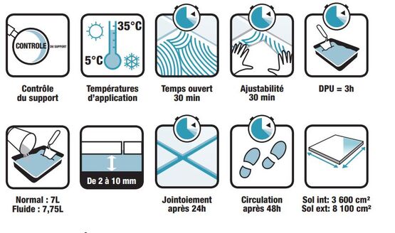 | Espace d'application : | à l’intérieur ; extérieur ; mur ; sol |