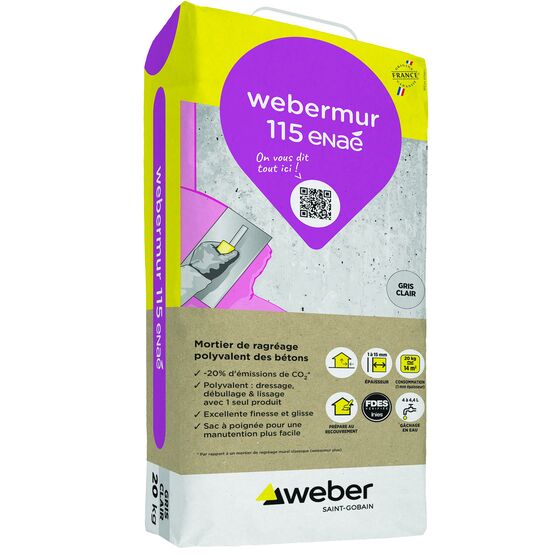 Mortier de ragréage mural et rattrapage des bétons à faibles émissions | Webermur 115 Enaé