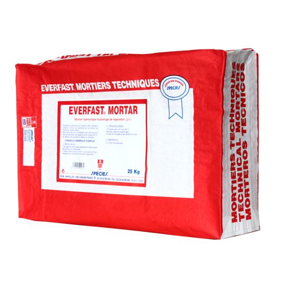 EVERFAST MORTAR est offert en deux types d’emballage : sac de 25 kg et palette de 48 sacs.
