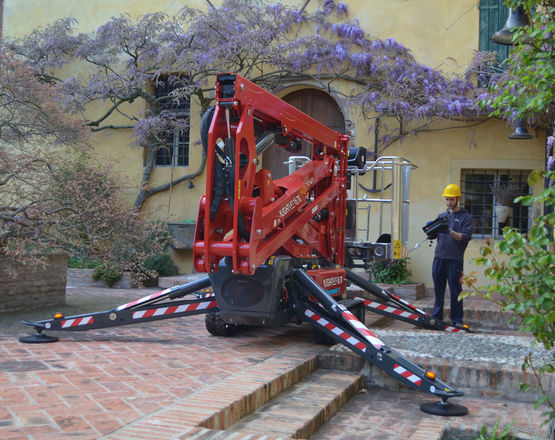 Cette machine est aussi munie de crochets de levage, installés sur des stabilisateurs Heavy Duty et garantissant la mise en place sur chantier avec une grue de levage. Avec sa structure articulée, en acier à haute densité, cette nacelle offre une haute stabilité pendant l’utilisation.
