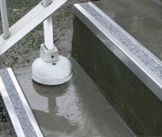 Ces bords antidérapants sont à fixer mécaniquement tous les 30 cm sous les inserts, puis à coller avec du mastic MS. Ils offrent un aspect esthétique et fonctionnel grâce à leur finition soignée en aluminium anodisé avec la possibilité d’anodisation or, bronze et noir.