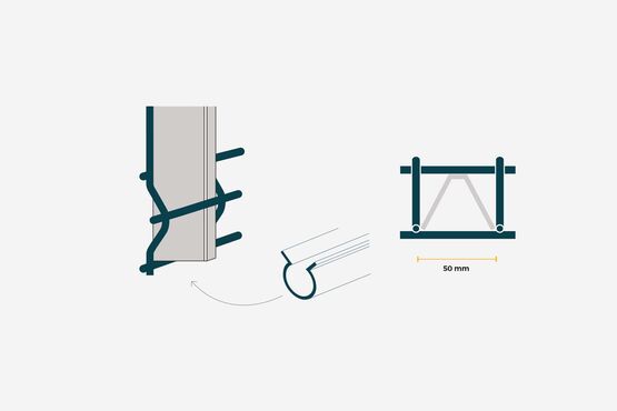 La lamelle Epsilon se rabat dans sa hauteur afin de s’insérer facilement dans les panneaux rigides à plis de 38 mm ou 44 mm maille 200x55 mm. Le kit Epsilon est composé de 45 lamelles et de 3 lisses d'arrêt (0,82 m).