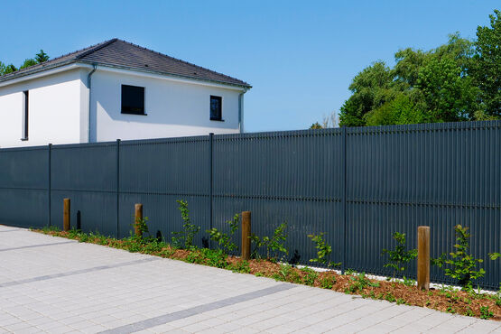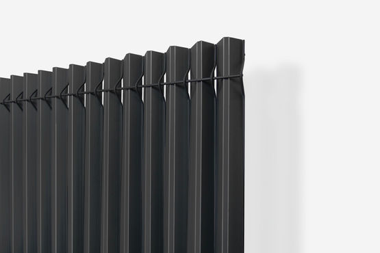 Avec ce type de lamelles et ce pliage innovant, il est possible de créer une clôture design et tout en relief en alternant différentes hauteurs de lamelles d'occultation et créer ainsi un effet décoratif unique.