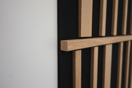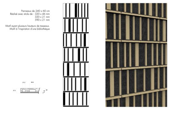 Offrez une seconde vie au bois ! Petit Octave est une gamme innovante de panneaux éco-acoustiques, concue à partir de chutes de bois massif. Chaque panneau raconte une his- toire, alliant authenticité, durabilité et design.