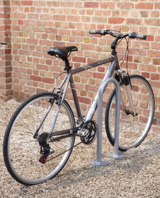 - Lot de 2 arceaux range vélos forme trombone en acier zingué avec peinture poudre époxy grise.