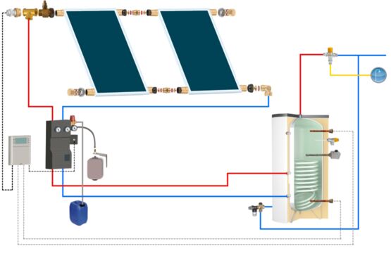 | Caractéristiques techniques : | Pack disponible avec 1 à 6 panneaux, ballon de 200 à 800 litres, groupe de transfert, soupape, mitigeur, vase, raccords |