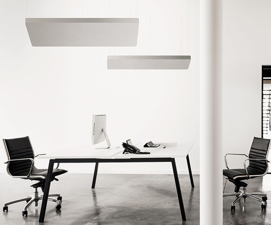 Les panneaux acoustiques AIRPANEL 1 FACE se fixent facilement sur des murs, notamment des surfaces minérales, des habillages en bois ou des surfaces métalliques à travers des aimants et des rails gris acier, ou sur des plafonds, suspendus ou plaqués, grâce à des élingues noires ou blanches en acier et des rails blancs laqués.