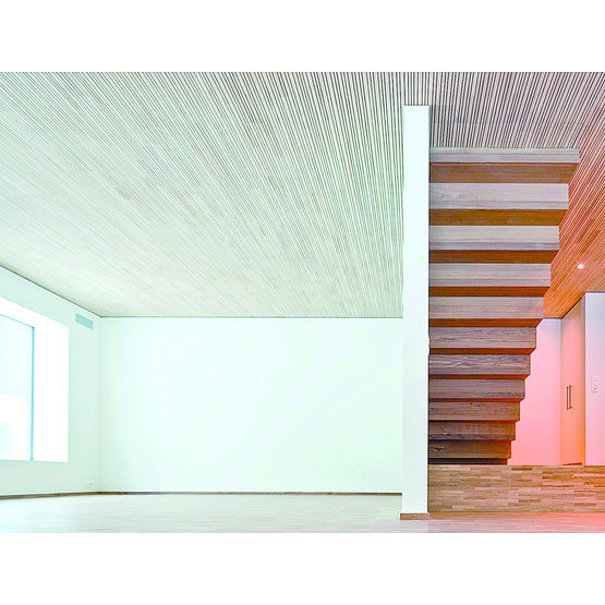 Panneau en bois de 32 ou 62 mm d’épaisseur et 62,5 cm de largeur destiné à l’habillage acoustique de parois en ERP, bâtiments tertiaires et immeubles collectifs. Application en plafonds suspendus, à cassettes ou en ilots et en doublage de murs. Constitué de trois plis contrecollés en sapin, épicéa, mélèze ou chêne avec, en face apparente, une alternance de lattes de bois de 12,4 à 24,9 mm de largeur et d’absorbeur en fibres de bois. Disponible en version vernie transparent, blanc ou coloré et peinte. Proposée en longueur sur mesure de 2,92 à 8 m.