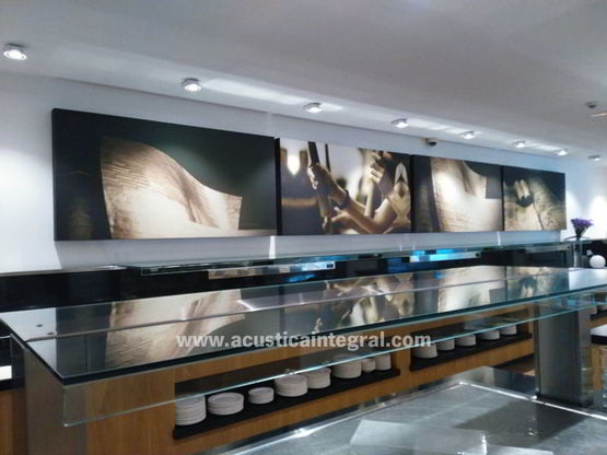 Cette conception sur mesure de plaques imprimées est une véritable expression du concept décoratif adopté, mais aussi un excellent absorbant acoustique offrant une indéniable diminution des temps de réverbération dans tout type de locaux : hôtels, restaurants, commerces, galeries d’art, établissements de santé, etc.