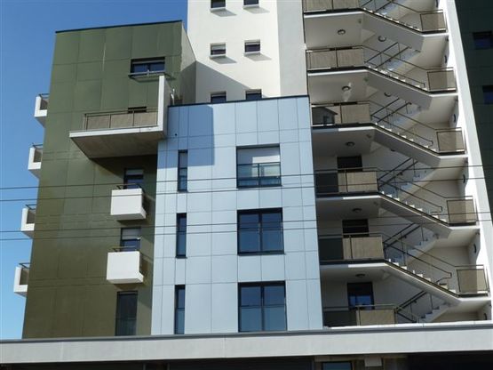 AUCOBOND PLUS jusqu'à 28M de hauteur et ALUCOBOND A2 pour plus de 28 M de haut