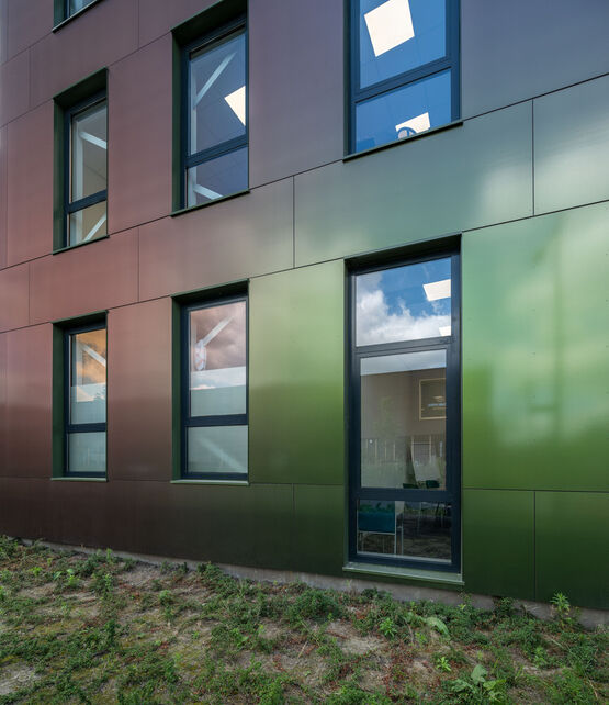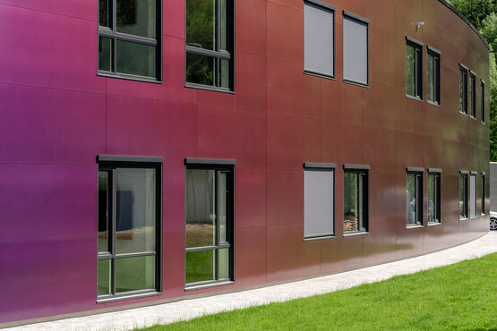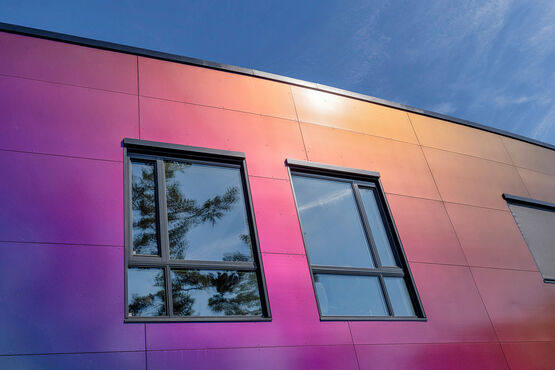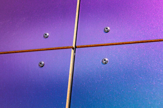 Le panneau de façade ROCKPANEL Chameleon transforme les façades en surfaces vivantes et captivantes. Il s'installe par vissage ou rivetage et est compatible avec différents types d'ossatures.