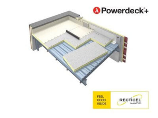 L’isolant thermique Powerdeck+ est destiné à l’isolation des toitures-terrasses, bac acier ou bois, en construction neuve ou en rénovation.