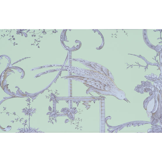- Motifs d'arabesques avec drapés, treilles de fruits, fleurs et oiseaux, répétés tous les 72,5 cm