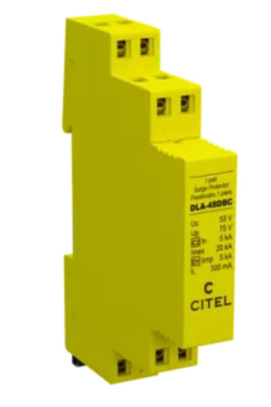 | Caractéristiques techniques : | dimensions (l x h x p) : 13 x 90 x 65 mm ; niveau de protection (Up) : 220 V (DLA-170) ; 75 V (DLA-48dBC) ; 70V(DLA-48D3) ; 40 V (DLA-24D3); 30 V (DLA-12D3) ; 25 V (DLA-06dBC) et 20 V (DLA-06D3) |