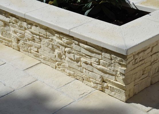 1. Esthétique soignée : Imitation fidèle de la pierre naturelle avec une finition bouchardée, permettant une intégration harmonieuse dans divers environnements extérieurs.