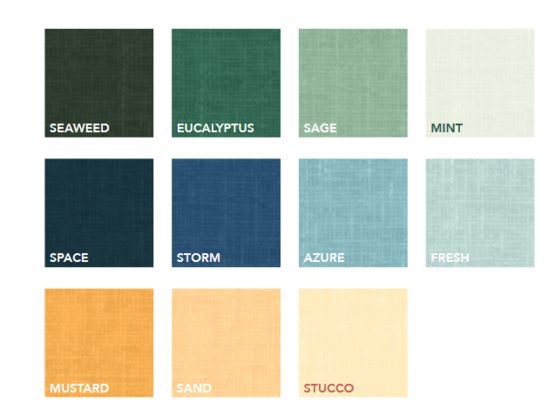 Les toiles sont détachables, lavables et remplaçables. Elles sont disponibles en 34 couleurs du Bien-être ou personnalisées au choix avec un design propre à l'utilisateur, pour s'adapter à l'ambiance, à la fonction ou à la marque de tout espace.