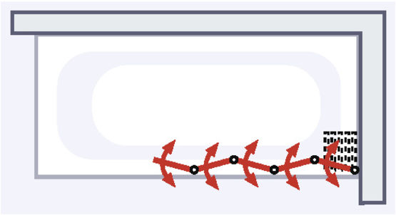 - Ce pare-baignoire est conçu pour un montage à gauche en standard. En cas de fixation à droite, la sérigraphie sera à l’intérieur côté douche.