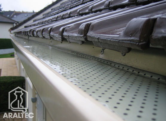 - Pare-feuilles en aluminium anodisé à perforations brevetées, utilisés pour la protection des gouttières en aluminium.