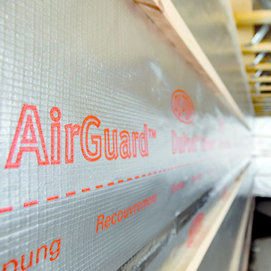 | Mise en oeuvre : | pose intérieure ; pose de la membrane sur l'ossature bois ; fixation par agrafage ; étanchéité périphérique par adhésif (Vario KB1) et mastic (Vario DS). |