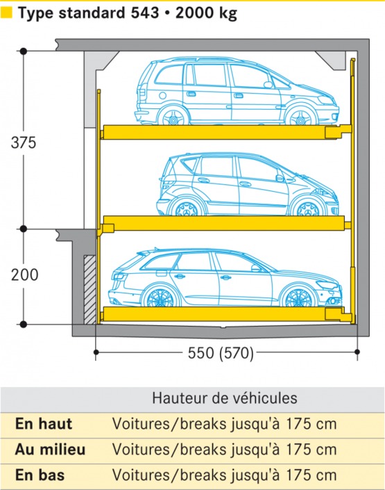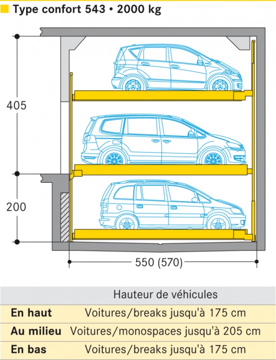 | Hauteur : | 175 cm - en haut ; 205 cm - en bas (véhicule) |