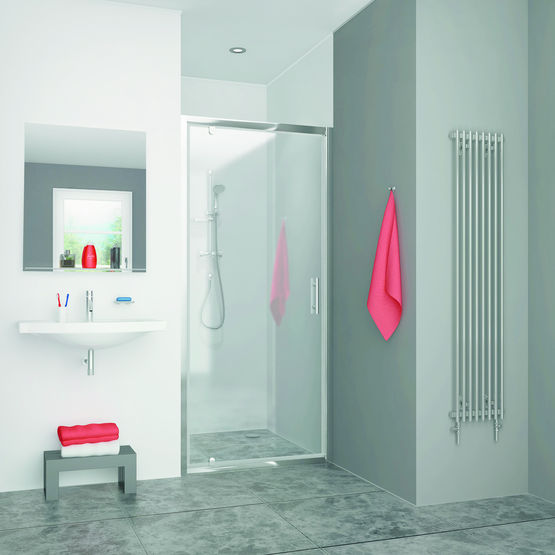 La paroi de douche FORDHAM est enrichie par des panneaux d’extension et des profilés de compensation en option.