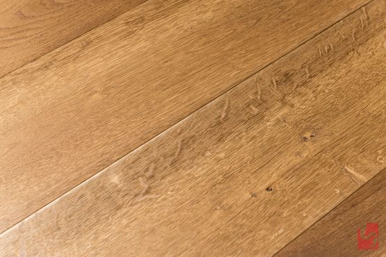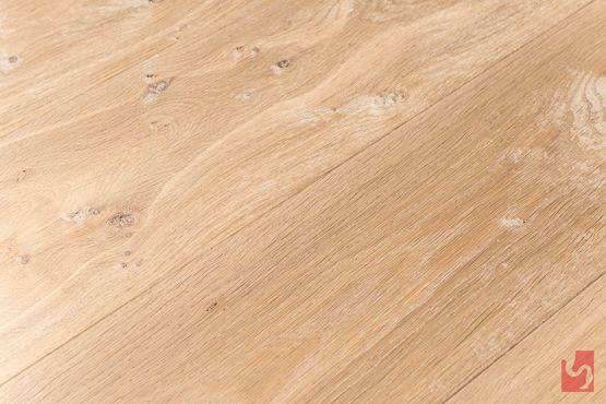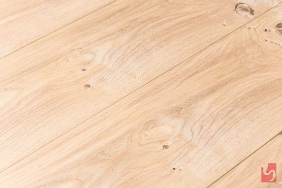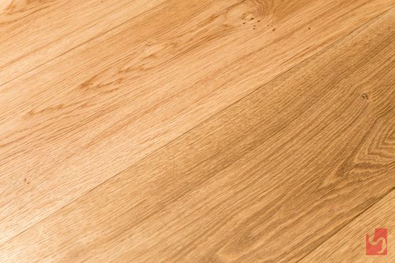 Ces revêtements de sols se distinguent par des rainures et des languettes sur les quatre côtés, des bords droits ou chanfreinés sur les côtés (2 mm) non finis à l’état brut (Possibilité d’autres finitions au choix et sur demande) une surface poncée ou rabotée et des nœuds mastiqués en brun.