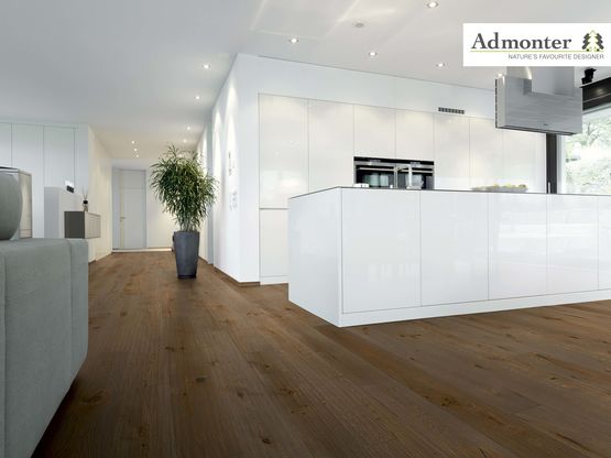 Le sol idéal pour votre bien-être. La bonne ambiance commence par le sol. Il constitue la base pour la suite. Et celle-ci peut être extrêmement variée. Peu importe quelle conception intérieure vous choisirez, nous aurons le sol en bois véritable qu’il vous faut. La diversité des choix possibles est étonnante. D’un sentiment de sécurité familiale jusqu’au chic alpin en passant par un design naturel moderne ou un design épuré. Des sols qui vous correspondent et qui donnent une ambiance particulière à chaque pièce de la maison.Les variations de largeur et longueur des lames de la gamme F L O O R S sont une évidence tout comme un choix entre des types des bois et des finitions différentes. Chacune d’elles a ses particularités et s’insère ainsi dans votre monde très personnel. Une structure en trois ou deux couches évite la torsion naturelle du bois et permet de s’appuyer sur nous a vie . Voilà tout sur le côté technique de F L O O R S , pour tout le reste c’est vous qui décidez selon vos préférences.
