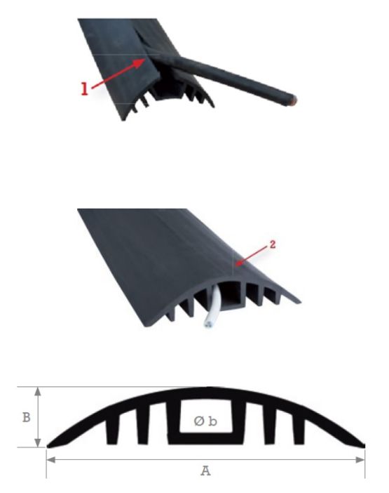 Ce protège-câbles présente une conception novatrice fabriquée à base d’élastomère : un matériau hautement résistant reconnu pour ses excellentes propriétés chimiques et mécaniques.