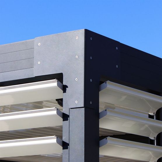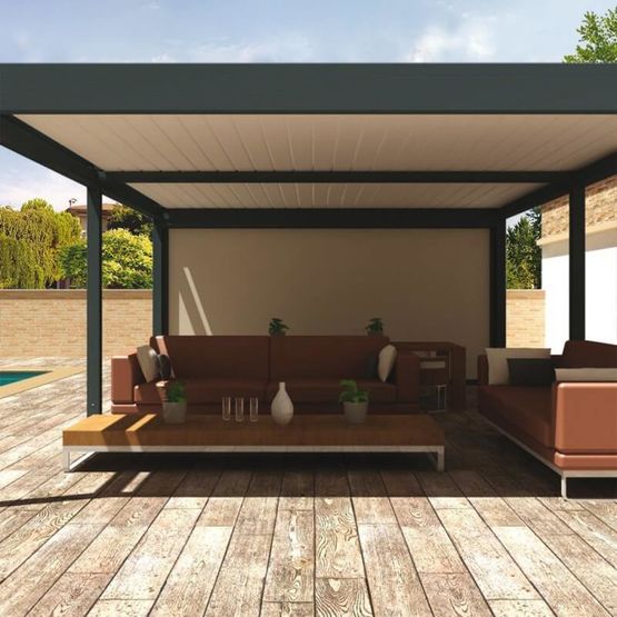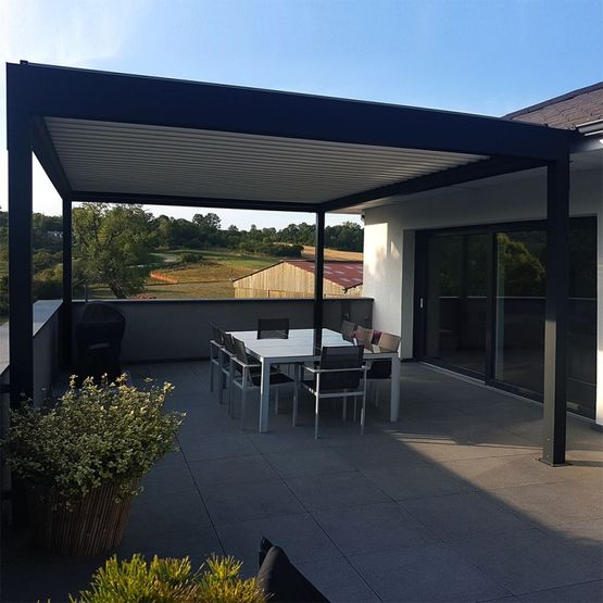 3. Design haut de gamme : Disponible avec une finition thermo-laquée texturée ou satinée en plusieurs couleurs, la pergola ajoute une touche d'élégance à tout aménagement extérieur, s'harmonisant avec les esthétiques variées des différents projets.