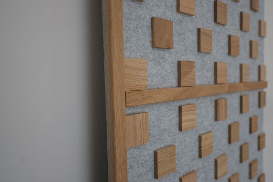 Offrez une seconde vie au bois ! Petit Octave est une gamme innovante de panneaux éco-acoustiques, concue à partir de chutes de bois massif. Chaque panneau raconte une his- toire, alliant authenticité, durabilité et design.