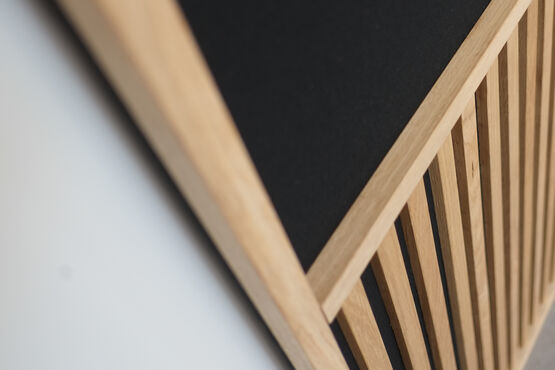 Offrez une seconde vie au bois ! Petit Octave est une gamme innovante de panneaux éco-acoustiques, concue à partir de chutes de bois massif. Chaque panneau raconte une his- toire, alliant authenticité, durabilité et design.