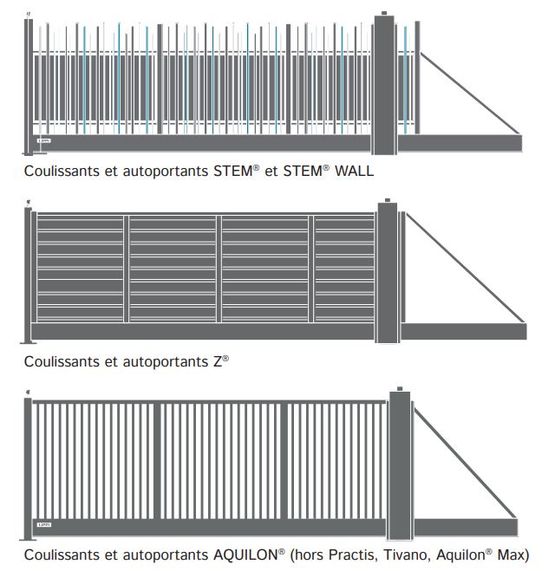 - Compatibles avec les portails coulissants et autoportants des gammes AQUILON, Z et STEM