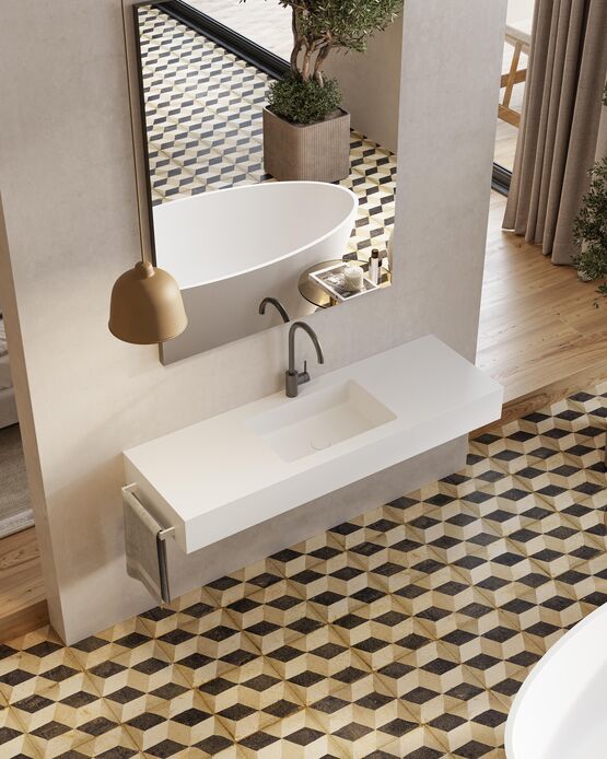Robustesse et durabilité : Composé de matériau Solid Surface, ce plan vasque offre une excellente résistance et est conçu pour un usage quotidien intensif.