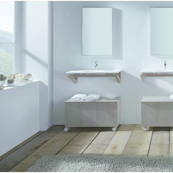 | Largeur : | (l x h x p) : 80 x 21,5/ 90 x 48 cm (plan vasque sur console ou piètement) ; 60 x 160 x 31,7 cm (étagères) et 80 x 48,2 x 50,6 cm (coffre). |