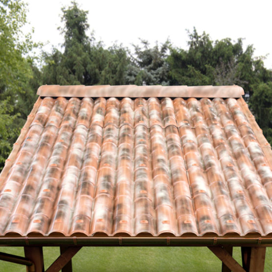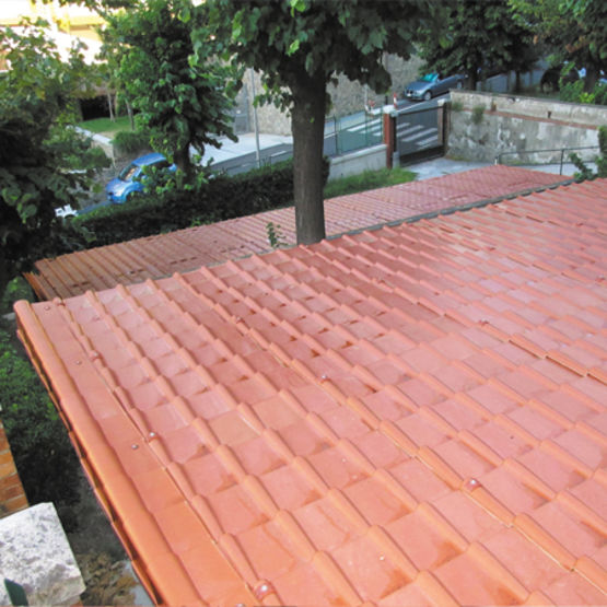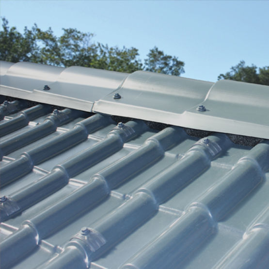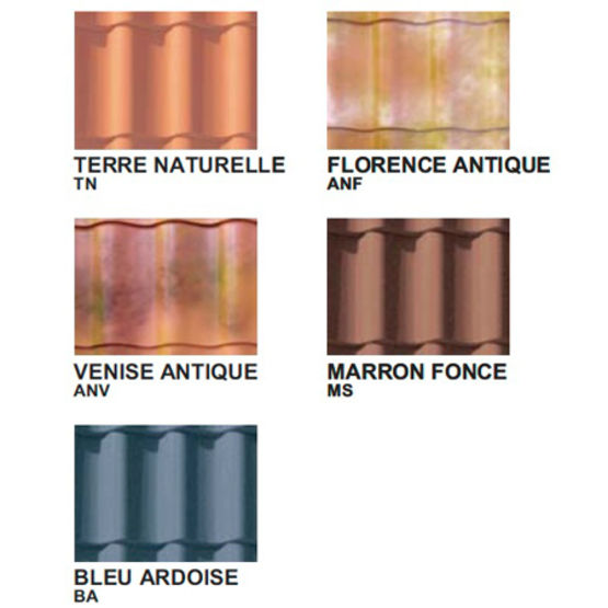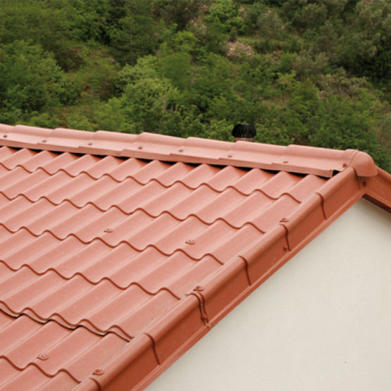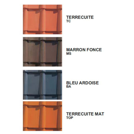 | Accessoires : | faitières, demi-faitières, vis autiforeuse jaune, cavaliers de fixation à joints, raccords muraux et raccords de gouttière |
