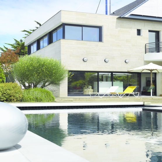 Brécy propose une gamme d'éléments architecturaux à appareiller façon pierre de taille, en intérieur ou en extérieur. La collection en pierre reconstituée de 2 cm d'épaisseur se décline en pierre de parement, chaîne d'angle, linteau de plusieurs dimensions et appui de fenêtre. Les produits sont teintés dans la masse et hydrofugés dans l'épaisseur. La mise en œuvre est facile : on pose par simple (intérieur) ou double (extérieur) encollage sur support maçonné.