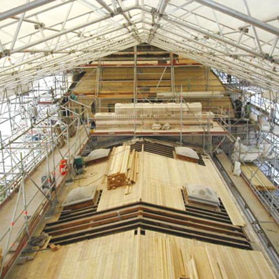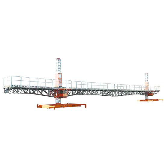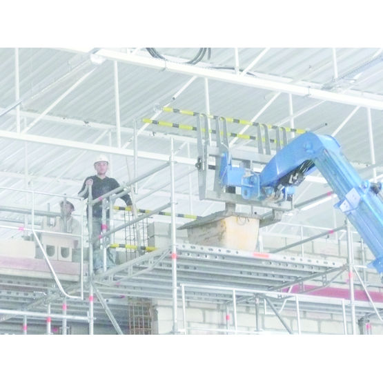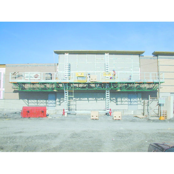 | Mise en oeuvre : | réglage longrines et vérins, fixations sur façade par attaches, ponts en porte-à-faux ou posés entre deux plates-formes suivant portée; montage en une journée. |