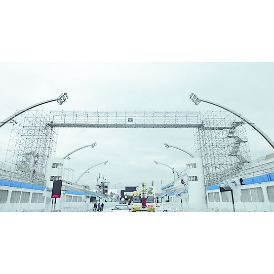 | Largeur : | (l x L) : 210 x 730 cm (plate-forme), 340 x 540 cm (emprise au sol) et 40,6 x 40,6 cm par unité de 1,5 m de hauteur (mât). |
