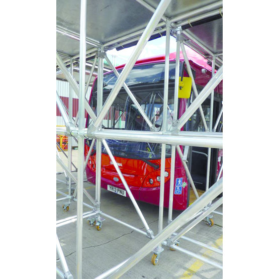 | Longueur : | (l x L) : 210 x 730 cm (plate-forme), 340 x 540 cm (emprise au sol) et 40,6 x 40,6 cm par unité de 1,5 m de hauteur (mât). |