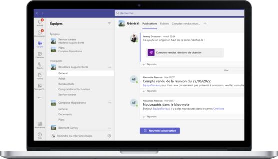Cet espace de travail collaboratif préserve l'organisation générale d'une société tout en permettant aux salariés de communiquer, d'interagir et de collaborer en étant dans leurs bureaux, sur le chantier, en déplacement ou même en télétravail.