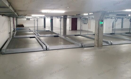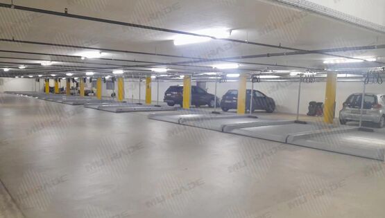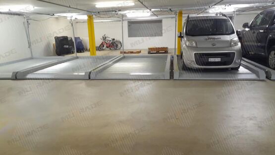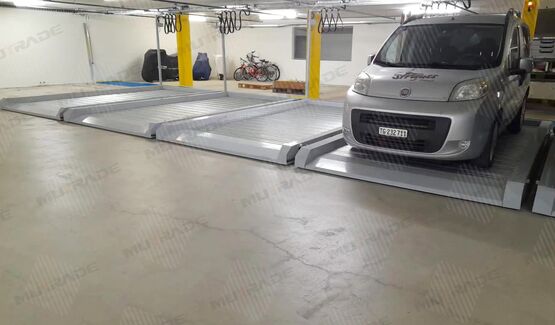 - Grâce à leur déplacement latéral grâce à des rails, les plateformes permettent de créer des places supplémentaires devant les places existantes, derrière les colonnes ou dans les angles.