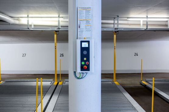 Grâce au système RFID, le fonctionnement de la WÖHR 601 est simple, intuitif et transparent. Une infrastructure de commande, intégrée à chaque place de stationnement, permet un contrôle individuel de chaque palette et facilite l'entretien.