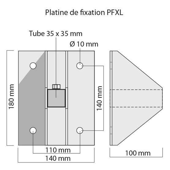 PFXL - hauteur 100 mm (Platine 140x180 mm avec 4 trous)
