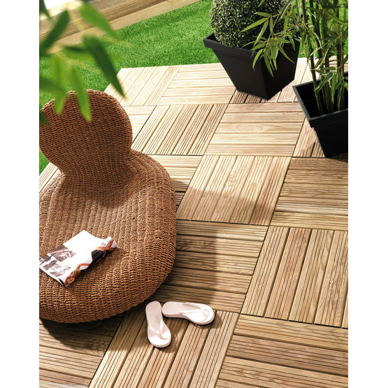 La nouvelle gamme EASIO® vous permet de construire une terrasse sur plots en toute simplicité grâce à ces nombreux avantages. Ce plot monobloc se compose tout d'abord d'une flasque carrée, imaginée pour faciliter la pose en angle. Sa tête autonivelante en forme de losange permet quant à elle de : compenser ou créer une pente jusqu'à 5%, faire un double lambourdage avec une seule rangée de plots mais aussi de maintenir un étrésillon avant de le fixer. Les deux languettes présentes sur la tête vous permettent également de centrer aisément la lambourde sur votre plot.