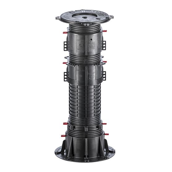 Robuste et résistant, le plot DPH est l’aîné de la famille des plots Buzon®. Réglable en hauteur de 18 à 1070 mm, sa bague de réglage et son correcteur de pente intégré PH5 (jusque 5%) en font le support idéal pour la réalisation d’espaces publics et les grands projets de construction.