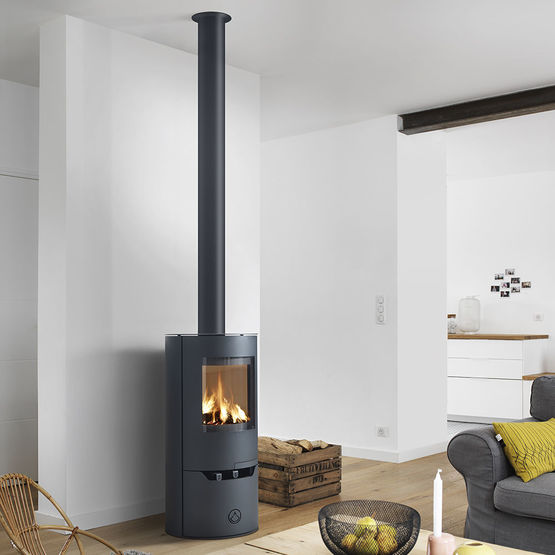 De style contemporain, ce poêle à bois combine esthétisme, performance et belle vision des flammes. Il accepte les bûches de 25 et 33 cm.