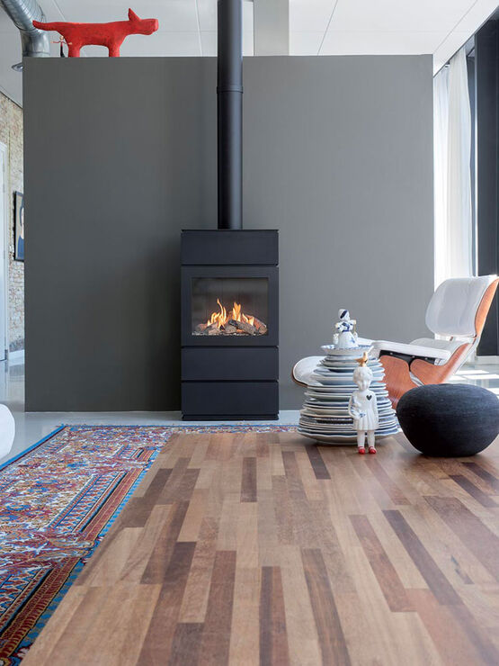 Entièrement réalisé en acier noir, ce poêle est équipé du brûleur Log Burner qui reproduit l’ambiance d’un feu de camp, avec des flammes réalistes et vacillantes.